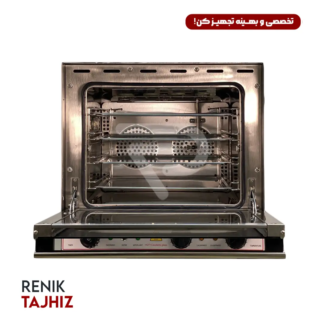 این فر با قدرت ورودی 4.2 کیلووات، سیستم حرارت غیرمستقیم و چرخشی را به کار میگیرد که باعث پخش یکنواخت حرارت و پخت سریعتر و سالمتر غذا میشود. بدنه داخلی و خارجی از جنس استیل نگیر ساخته شده و قابل استفاده در کافیشاپها، قنادیها، رستورانها و حتی منازل میباشد. این محصول با طراحی خاص و متفاوت مناسب برای راهاندازی کسب و کارهای حرفهای در فضاهای کوچک است.
