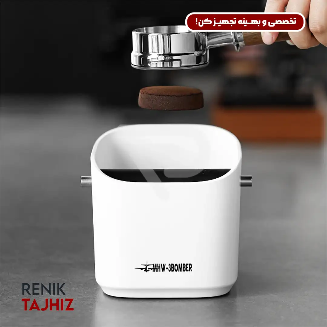 این ناک باکس از برند بمبر از جنس پلاستیک ABS با کیفیت بالا ساخته شده که دوام و طول عمر بالایی دارد. طراحی مربعی شکل آن مناسب برای استفاده با اکثر دستگاه‌های اسپرسو و همچنین فنجان‌های کوچک و بزرگ است.