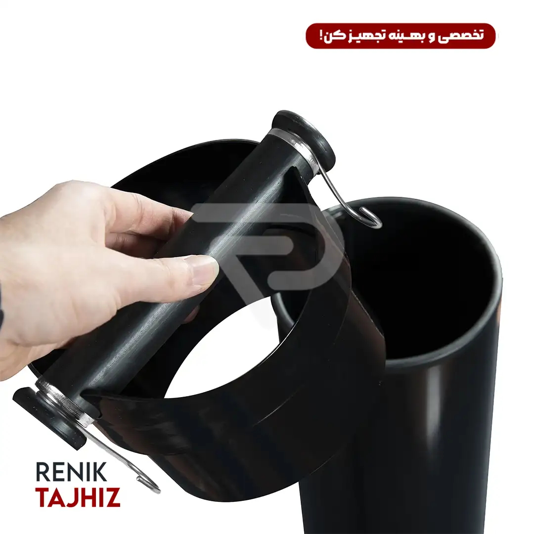 ناک باکس ایستاده گتر با بدنه استیل و مخزن داخلی پلاستیک مقاوم، برای جمعآوری تفاله قهوه طراحی شده است. این محصول با ارتفاع 90 سانتیمتر و قطر دهانه 17 سانتیمتر، مناسب مکانهای پرمشتری مانند کافیشاپها و هتلها است. طراحی زیبا، ظرفیت بالا و امکان استفاده از کیسه زباله باعث کاهش نیاز به تخلیه مکرر میشود. همچنین، قلاب آویز دستمال برای راحتی بیشتر تعبیه شده است.