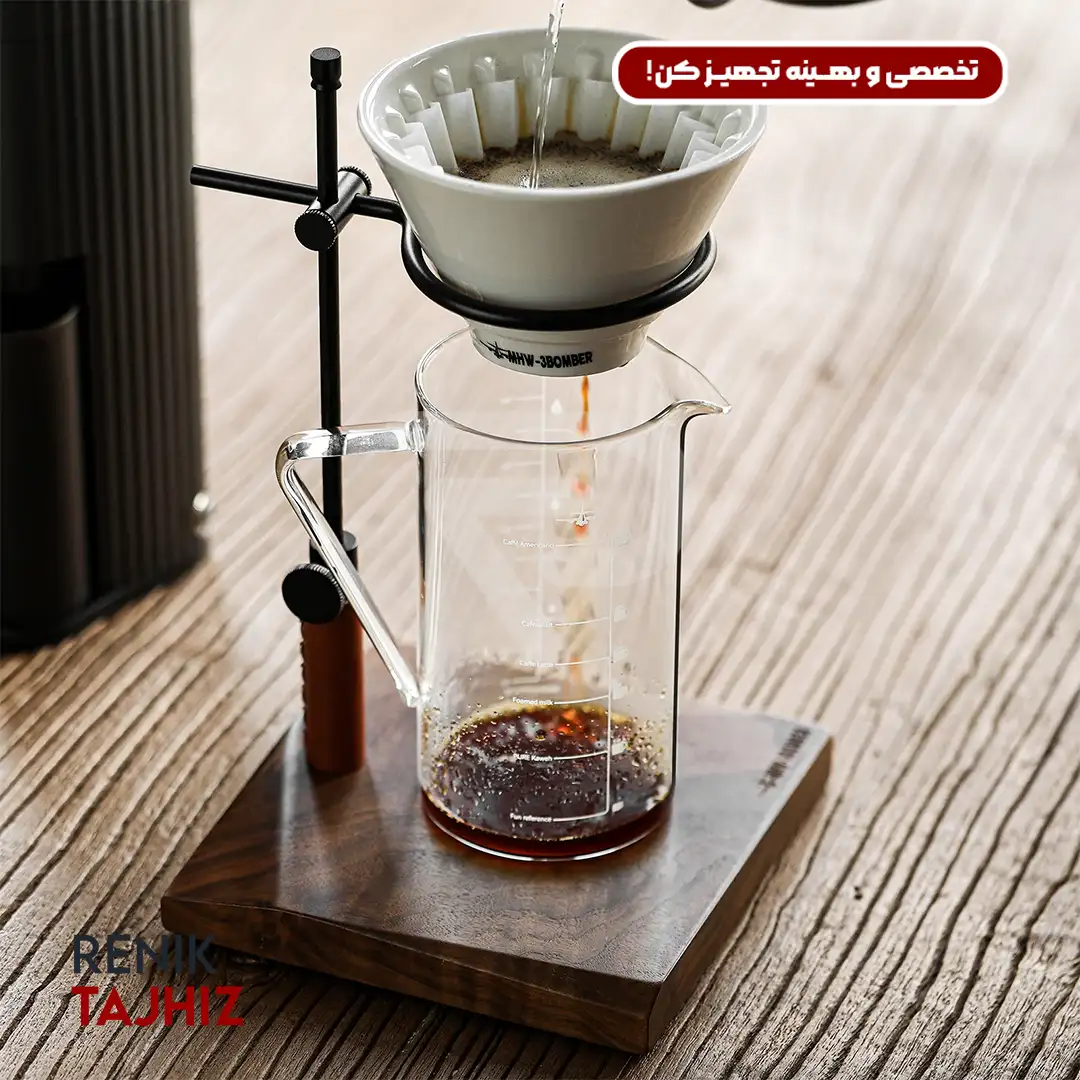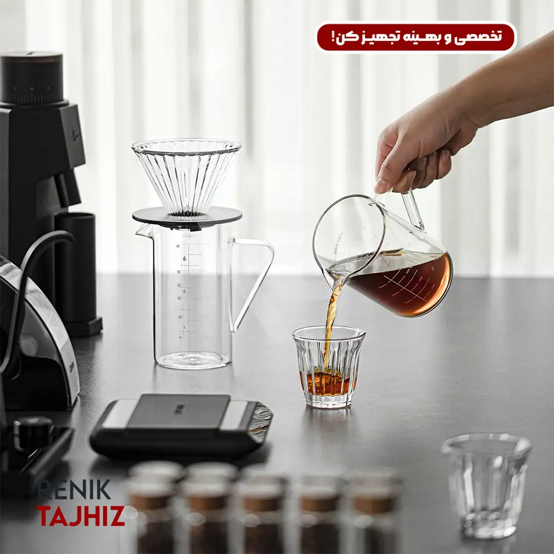 این سرور شیشه‌ای از برند بمبر، ابزاری تخصصی برای باریستاها است که با طراحی شفاف خود، امکان نمایش بهتر قهوه را فراهم می‌کند و برای استفاده در کافه‌ها و بارها مناسب است.
