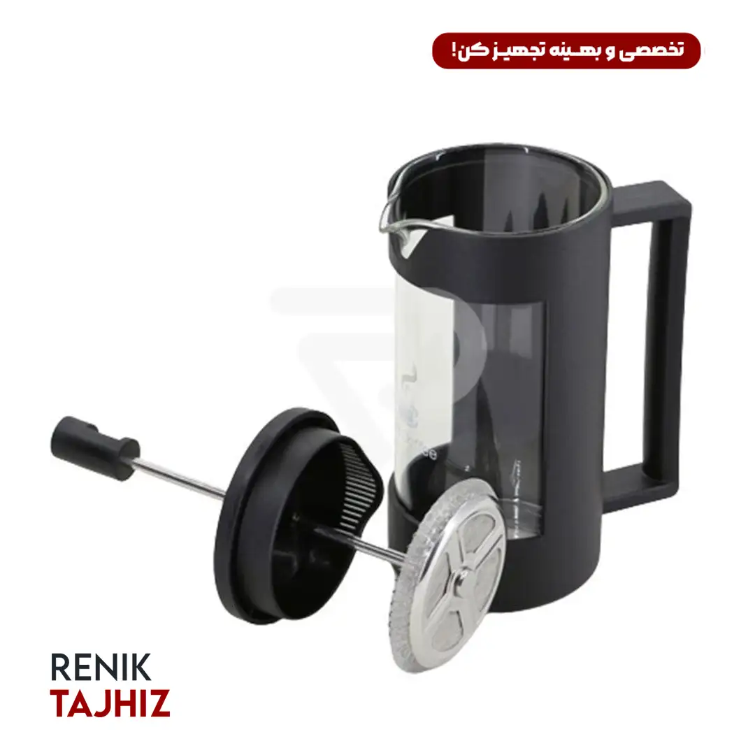 فرنچ پرس ۳۵۰ میلیلیتری مشکی وان کافی (One Coffee) یک ابزار کارآمد برای دم کردن قهوه فرانسه، دمنوشها و چای سبز است. این محصول با بدنه پلاستیکی مقاوم و شیشه پیرکس ضد حرارت طراحی شده و دارای فیلتر باکیفیت است. ابعاد آن ۱۷ سانتیمتر طول و ۷ سانتیمتر عرض بوده و ظرفیت ۳۵۰ میلیلیتر را داراست. این فرنچ پرس با طراحی زیبا و عملکرد آسان، گزینهای مناسب برای استفاده در منزل، محل کار و حتی کافیشاپها محسوب میشود.