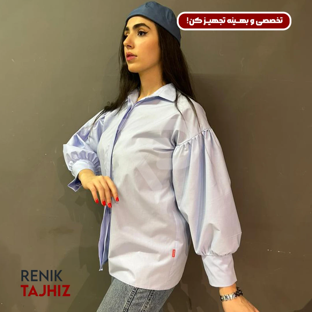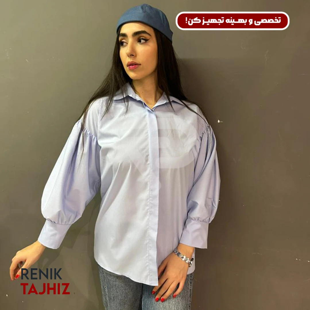 شومیز آستین پلیسه فری سایز آبی 1034 RENIK