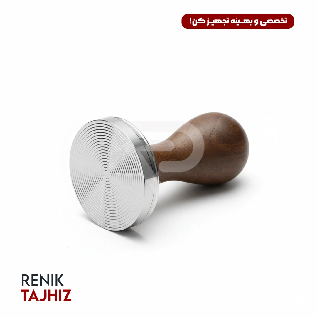 پایه این تمپر از استیل ضدزنگ 304 ساخته شده است؛ جنسی مقاوم در برابر زنگ‌زدگی و تغییر رنگ که دوام بالا و نظافت آسان را تضمین می‌کند. در بدنه، از چوب طبیعی گردو با بافت گرم و دست‌ساز استفاده شده تا علاوه بر زیبایی بصری، هنگام استفاده حس طبیعی و راحتی در دست ایجاد کند.