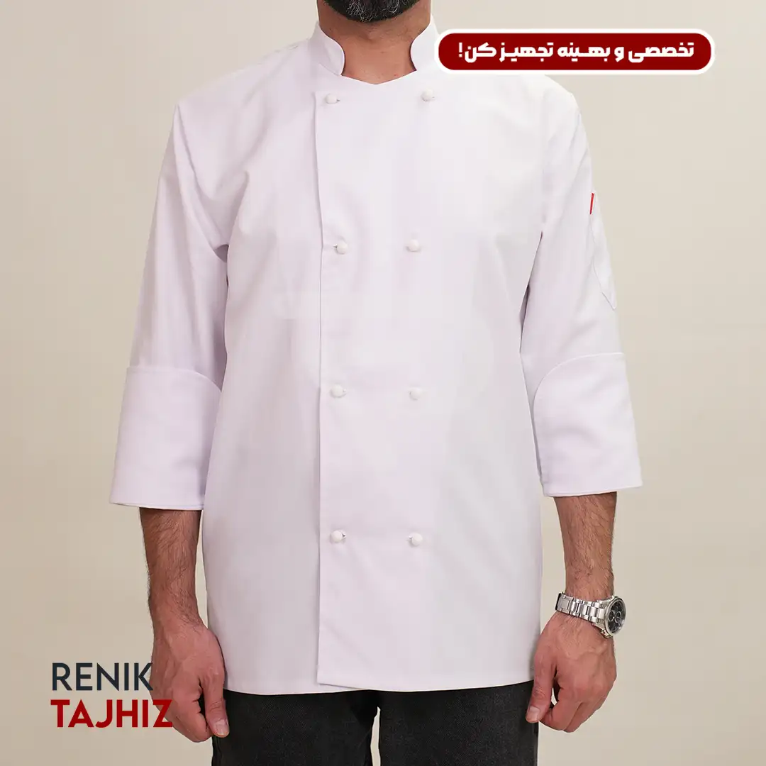 روپوش سفید از محصولات با کیفیت و حرفهای برای استفاده در آشپزخانههای صنعتی و رستورانها میباشد. این روپوش از جنس پارچه مرغوب و مقاوم تهیه شده است که در برابر لکهها و شستشوهای مکرر دوام بالایی دارد. رنگ سفید آن ظاهری شیک و تمیز به سرآشپز و کارکنان آشپزخانه میبخشد. فروشگاه رنیک تجهیز قابلیت سفارشیسازی این روپوش را براساس نیاز و درخواست مشتریان دارد.