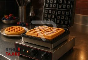 - وافل ساز چرخان: یک نمونه پیشرفته که صفحه دستگاه میچرخد و باعث پخت کاملاً یکدست وافل میشود؛ مثل مدلهایی که در هتلهای صبحانه یا رستورانهای بزرگ استفاده میشود.